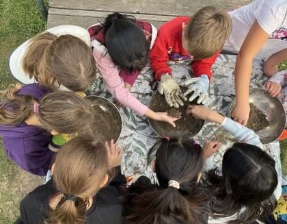 Am Herderplatz gestalteten die Kinder mit viel Freude eine neue Wildblumenwiese direkt vor ihrer Schule. Auch hier unterstützten die Lehrlinge der MA 42 tatkräftig bei den Erdarbeiten. Damit die Kinder die Wildnis mit nach Hause nehmen können, wurden zudem „Samenzuckerl“ aus heimischen Blühpflanzen für das nächste Frühjahr hergestellt.